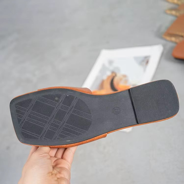 Trendy Transparent Design: Features a sleek transparent base paired with a one-line metal chain, creating a modern, elegant look. The "square head" toe adds a unique, fashion-forward touch that stands out in casual settings.